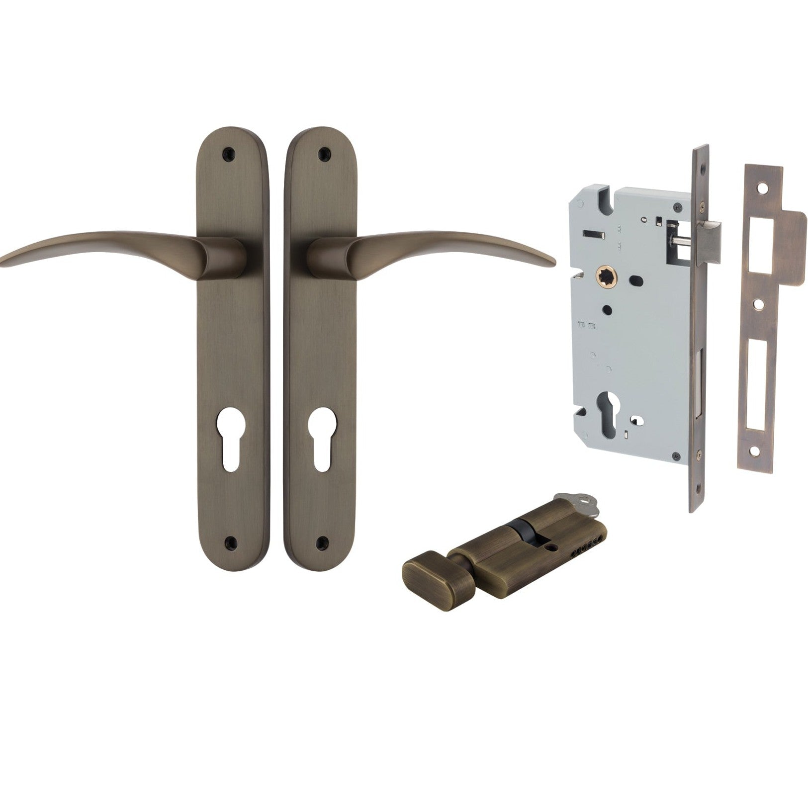 Included in Kit: Door Lever Oxford Oval Euro Signature Brass CTC85mm H240xW40xP60mm Entrance Kit, Mortice Lock Euro Signature Brass CTC85mm Backset 60mm, Euro Cylinder Key Thumb 6 Pin Signature Brass L70mm KA1