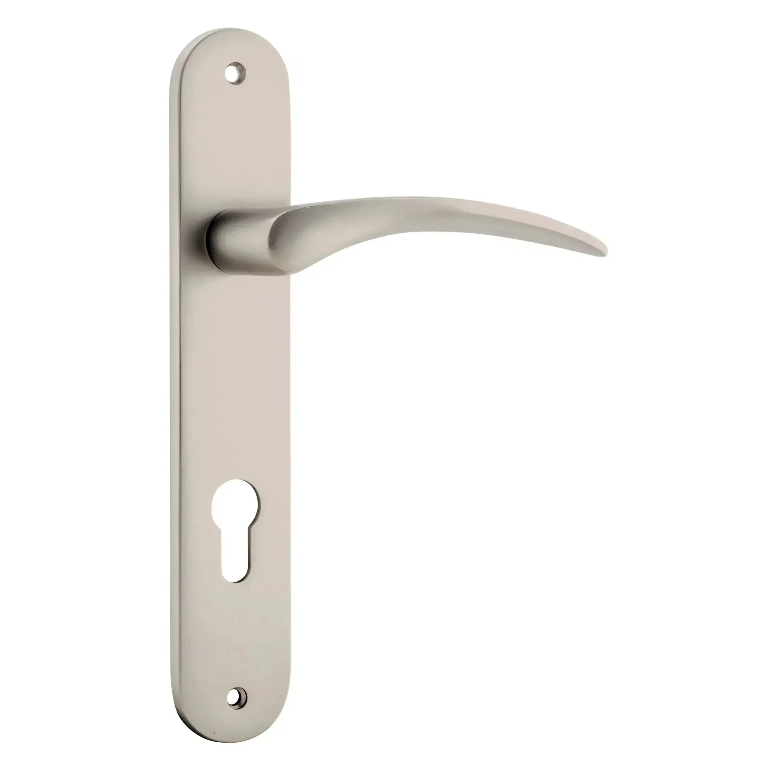Iver Door Handle Oxford Oval Euro Pair Satin Nickel