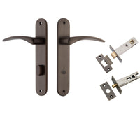 Included in Kit: Door Lever Oxford Oval Privacy Signature Brass CTC85mm H240xW40xP60mm Inbuilt Privacy Kit, Tube Latch Split Cam 'T' Striker Signature Brass Backset 60mm, Privacy Bolt Round Bolt Signature Brass Backset 60mm