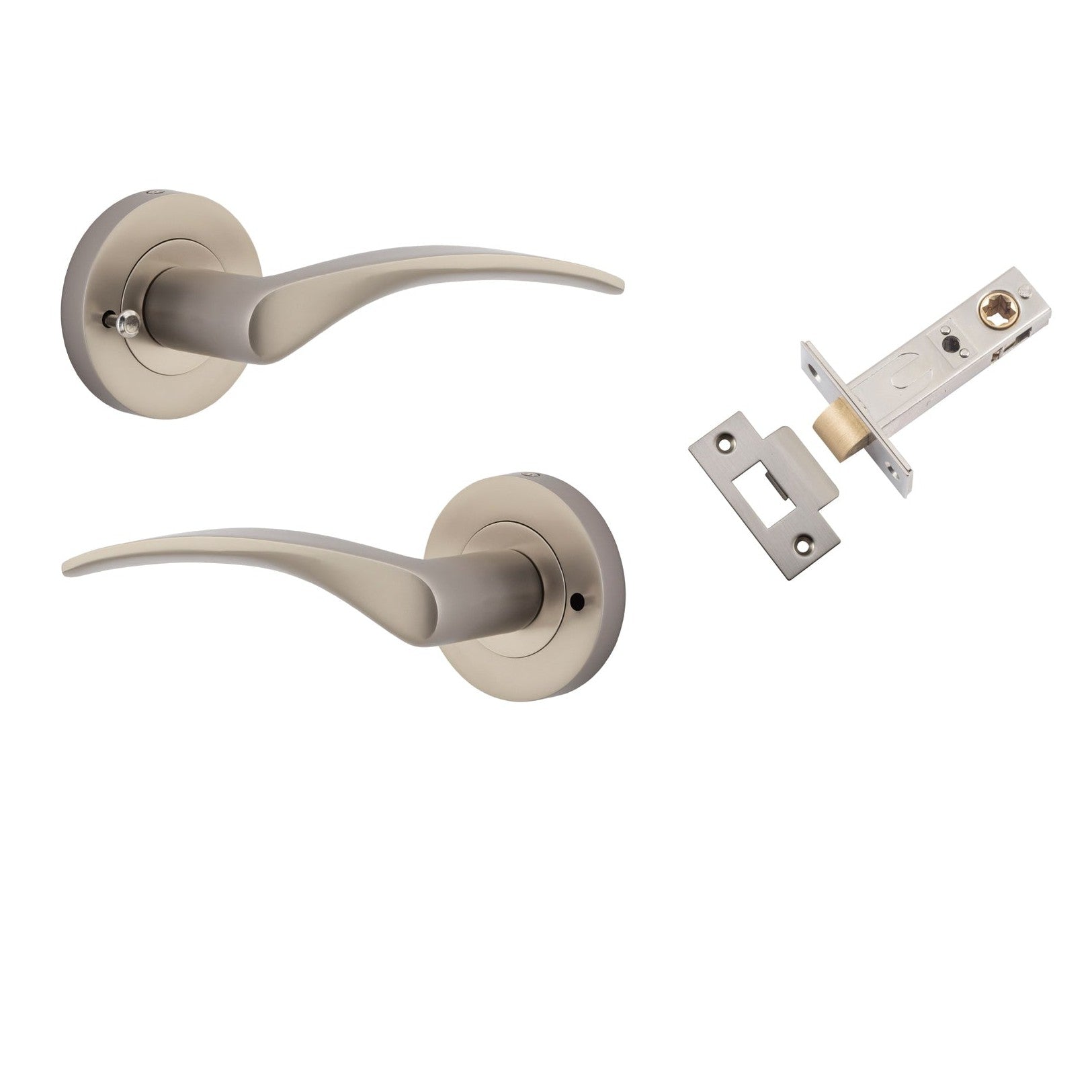 Iver Door Handle Oxford Round Rose Inbuilt Privacy Pair Kit Satin Nickel