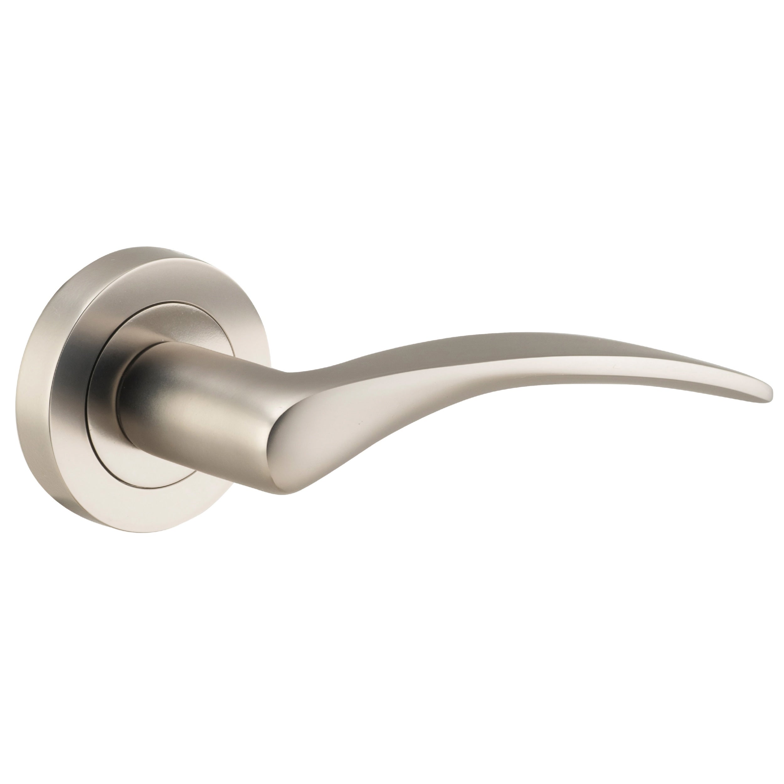 Iver Door Handle Oxford Round Rose Pair Satin Nickel