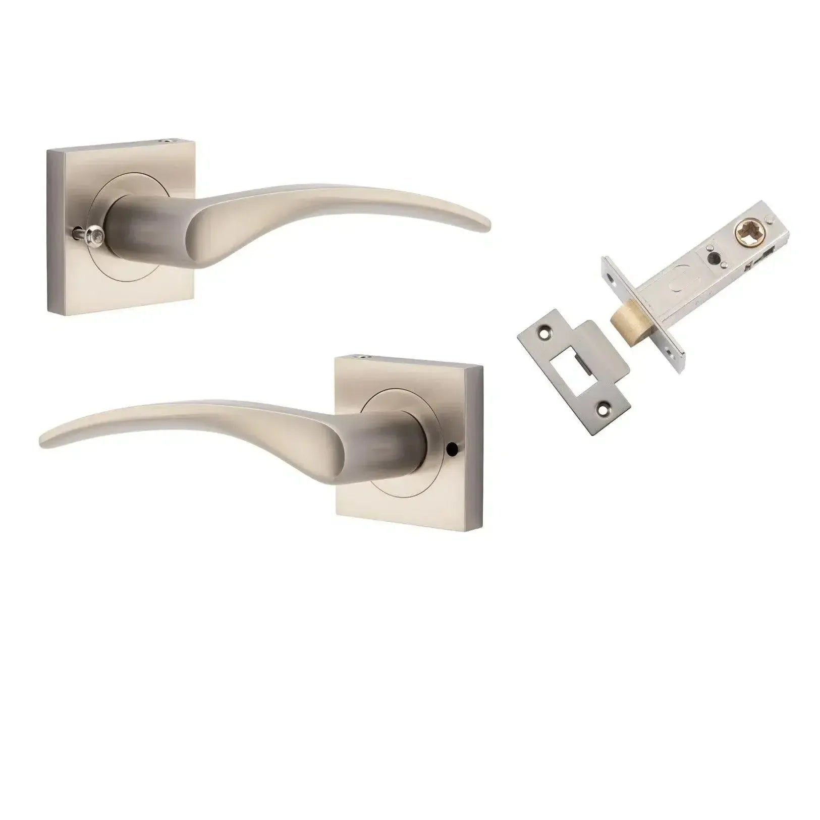 Iver Door Handle Oxford Square Rose Inbuilt Privacy Pair Kit Satin Nickel