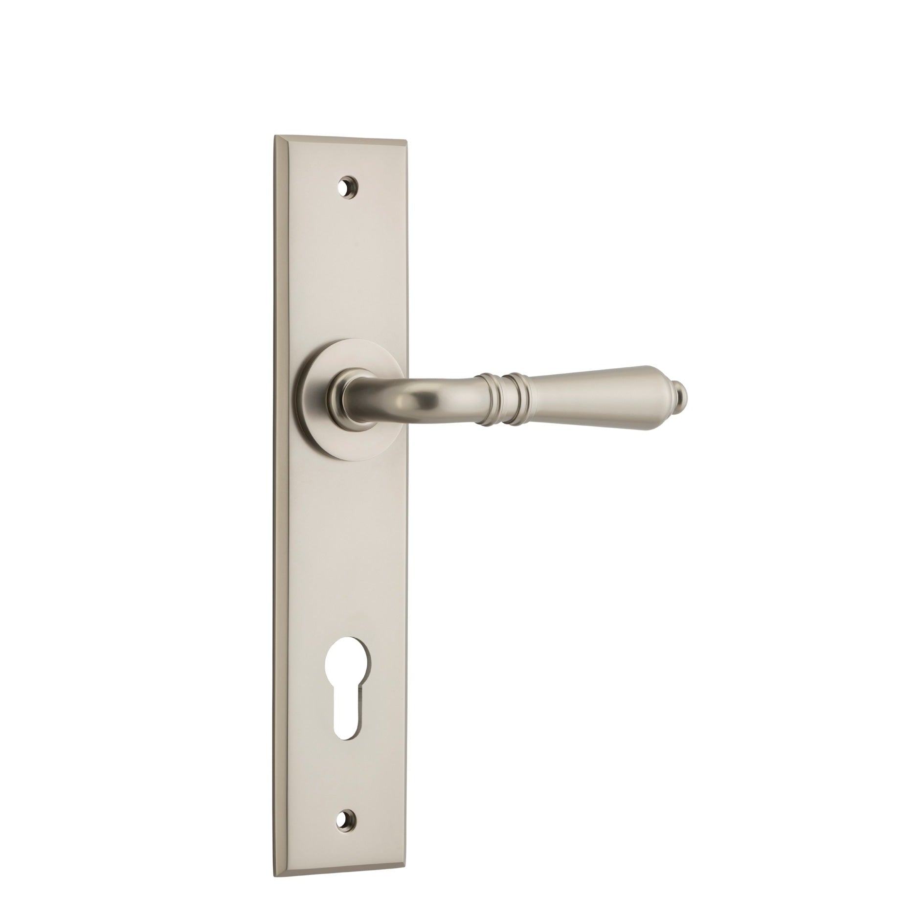 Iver Door Handle Sarlat Chamfered Euro Satin Nickel