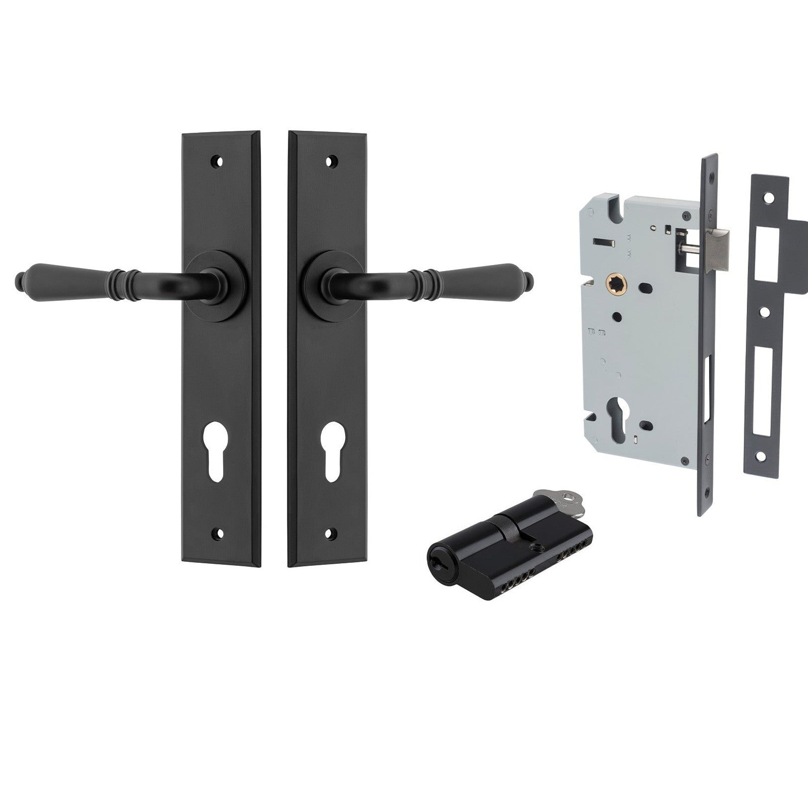 Iver Door Handle Sarlat Chamfered Key/Key Matt Black Entrance Kit