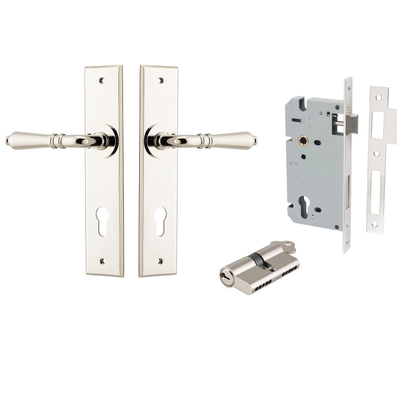 Iver Door Handle Sarlat Chamfered Key/Key Polished Nickel Entrance Kit