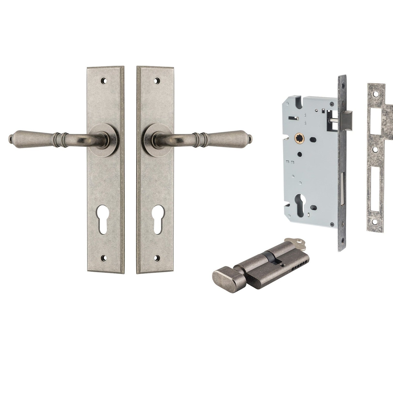 Iver Door Handle Sarlat Chamfered Key/Thumb Distressed Nickel Entrance Kit