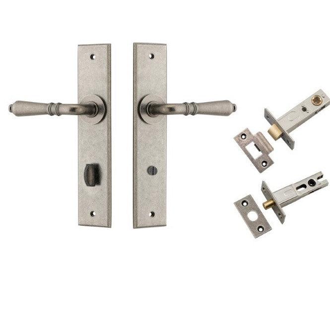 Iver Door Handle Sarlat Chamfered Privacy Distressed Nickel Privacy Kit