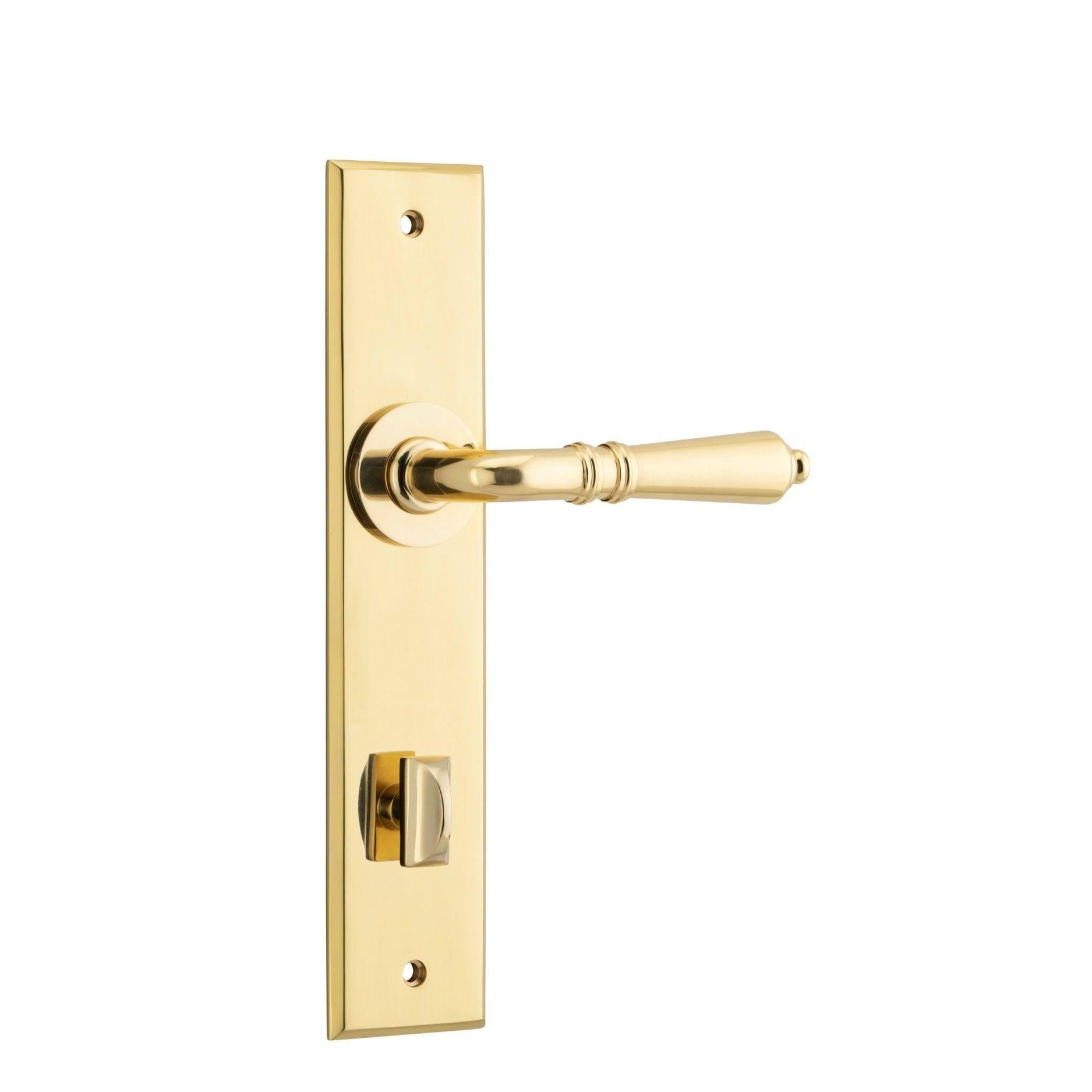 Iver Door Handle Sarlat Chamfered Privacy Polished Brass 85mm