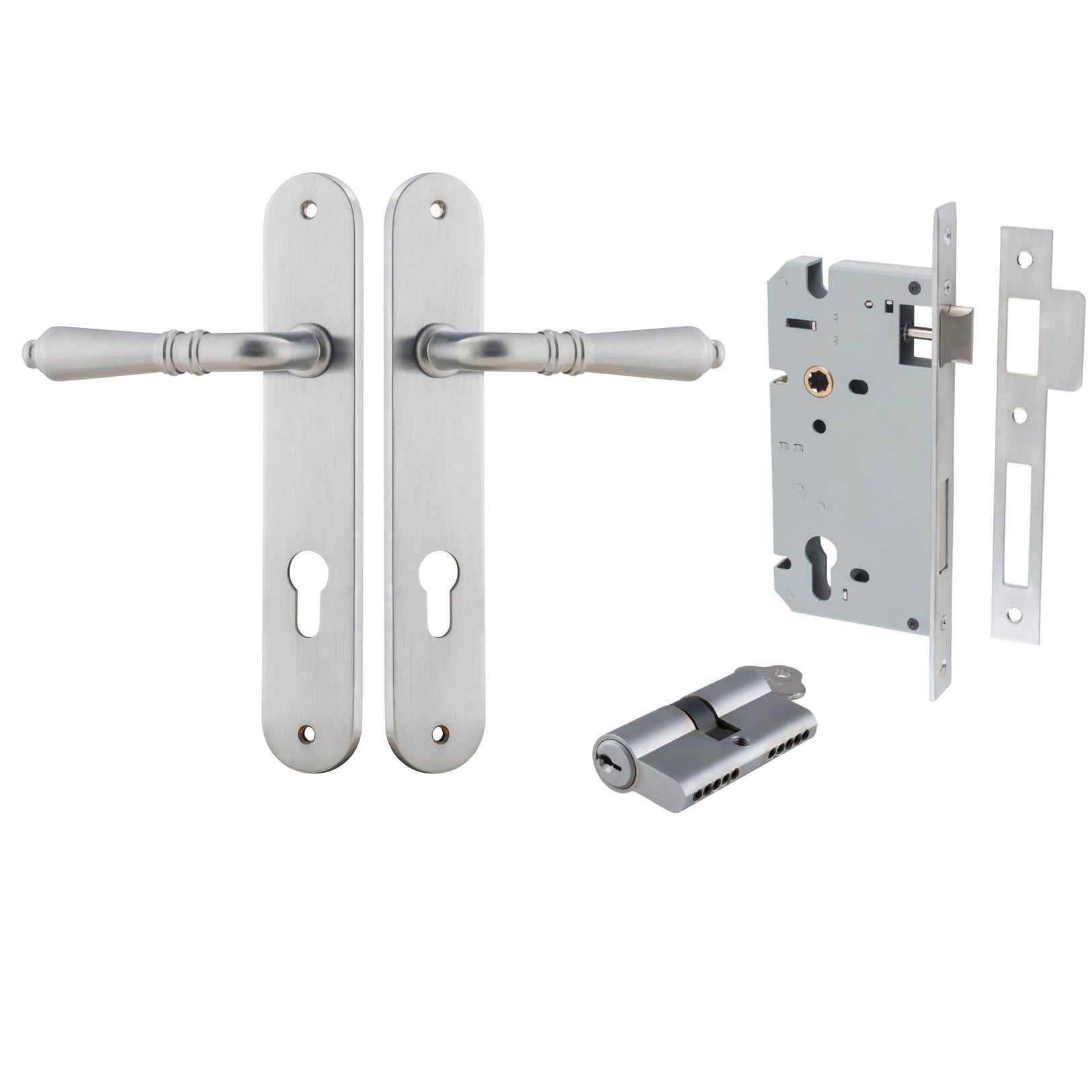Iver Door Handle Sarlat Oval Euro Key/Key Brushed Chrome Entrance Kit