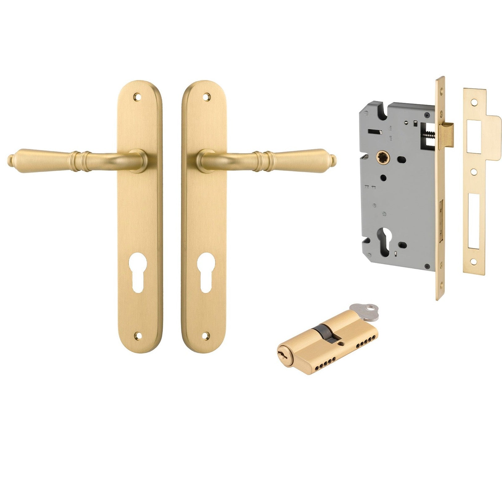 Iver Door Handle Sarlat Oval Euro Key/Key Brushed Gold PVD Entrance Kit