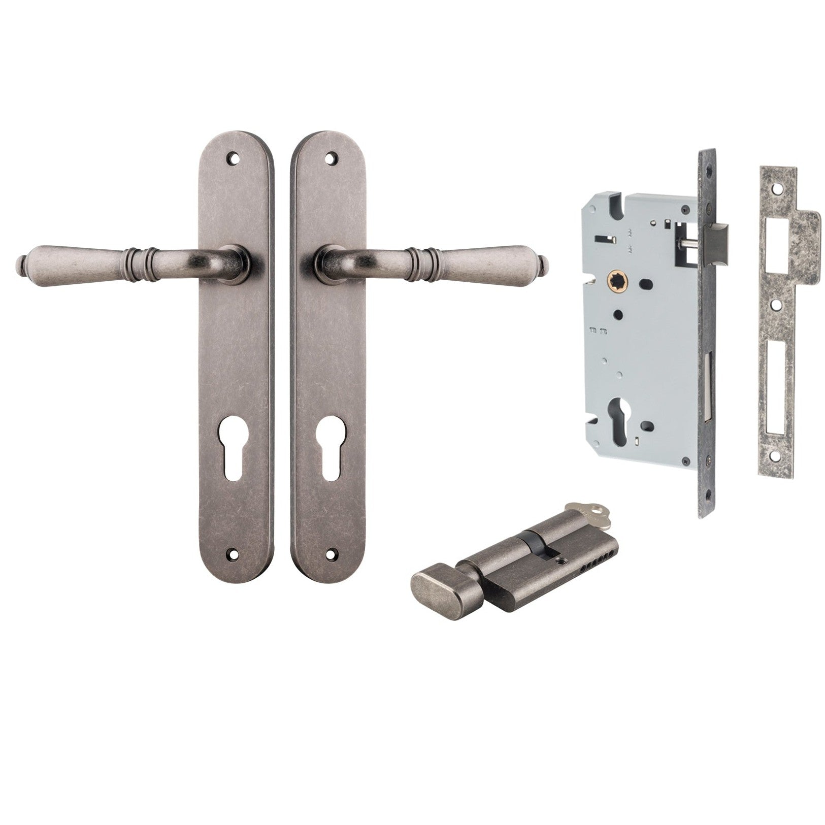 Iver Door Handle Sarlat Oval Euro Key/Thumb Distressed Nickel Entrance Kit