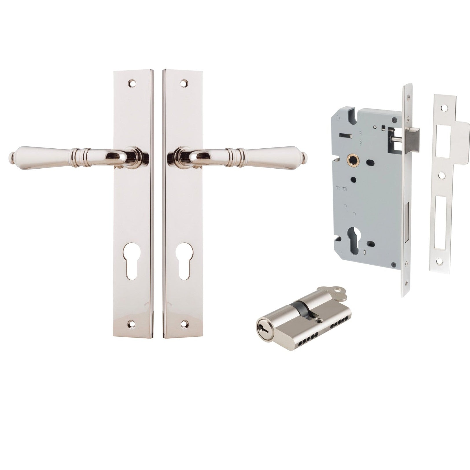 Iver Door Handle Sarlat Rectangular Euro Key/Key Polished Nickel Entrance Kit