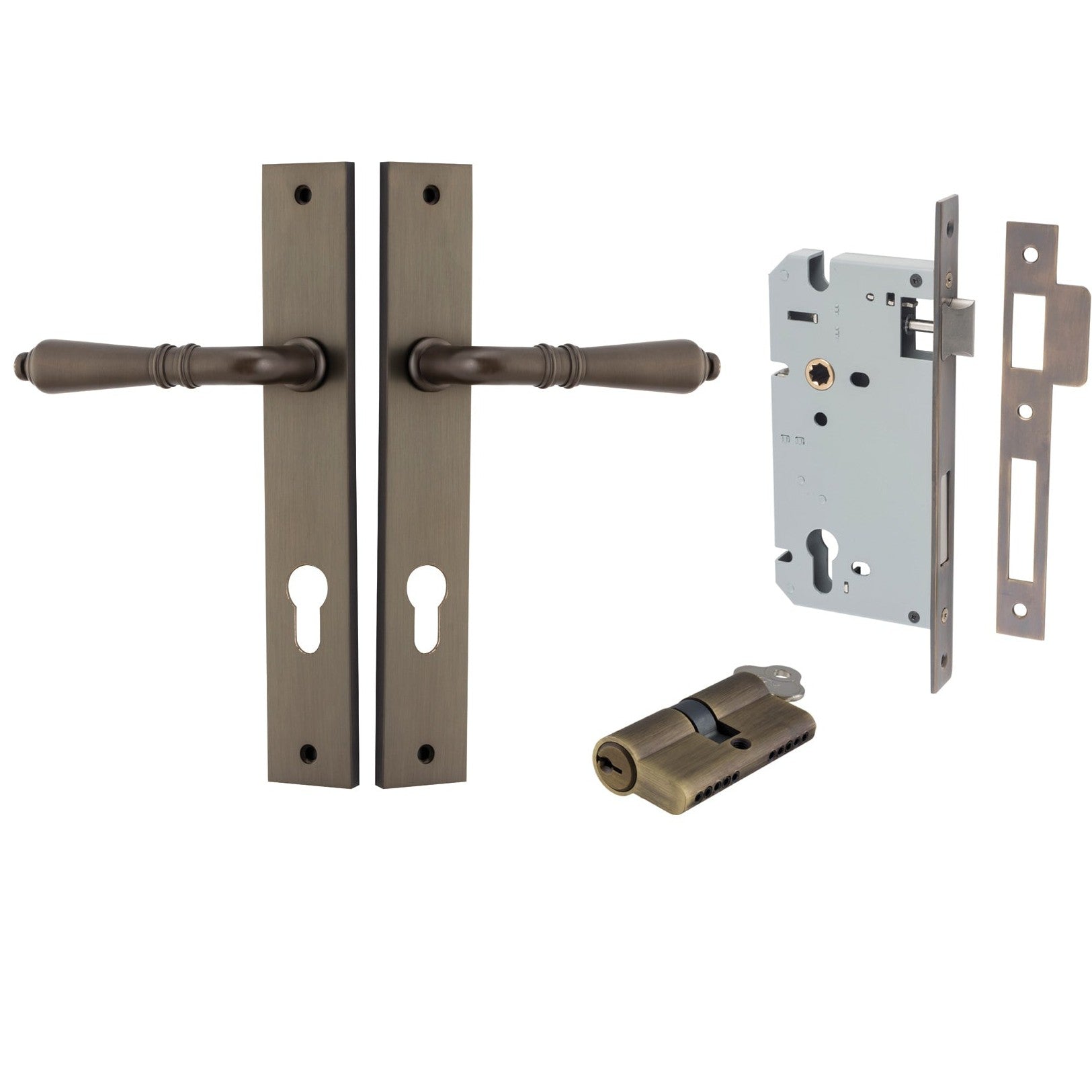 Iver Door Handle Sarlat Rectangular Euro Key/Key Signature Brass Entrance Kit