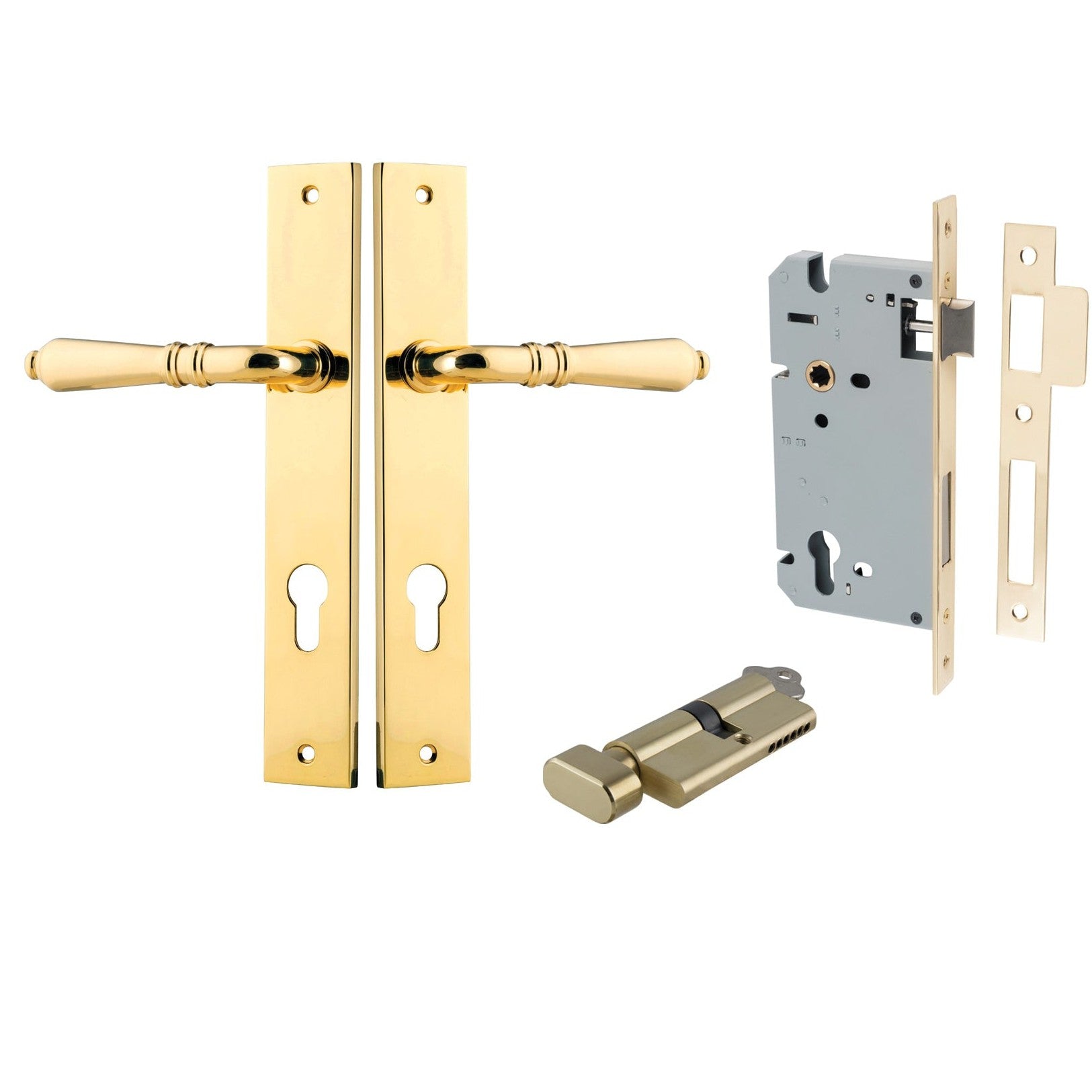 Iver Door Handle Sarlat Rectangular Euro Key/Thumb Polished Brass Entrance Kit