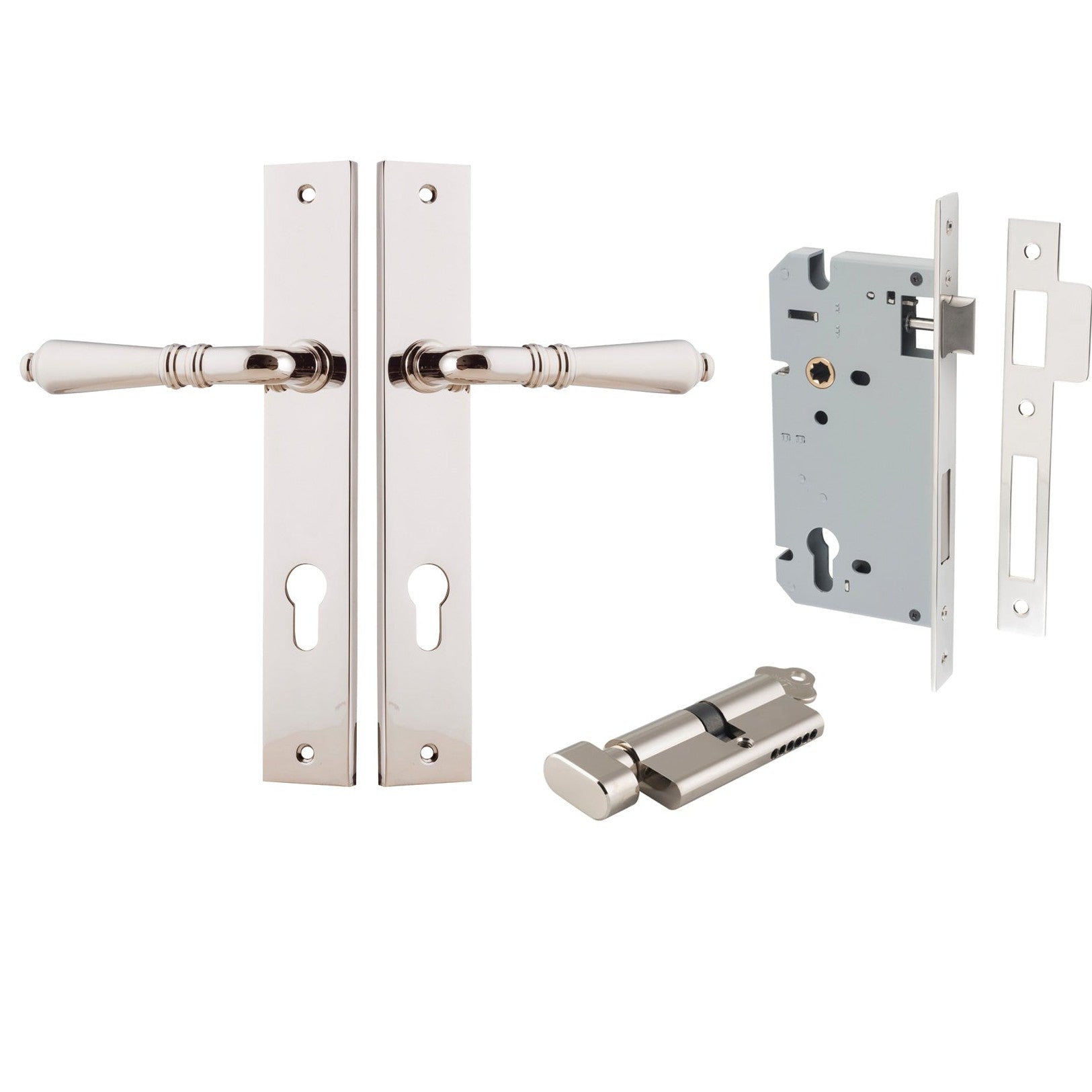 Iver Door Handle Sarlat Rectangular Euro Key/Thumb Polished Nickel Entrance Kit