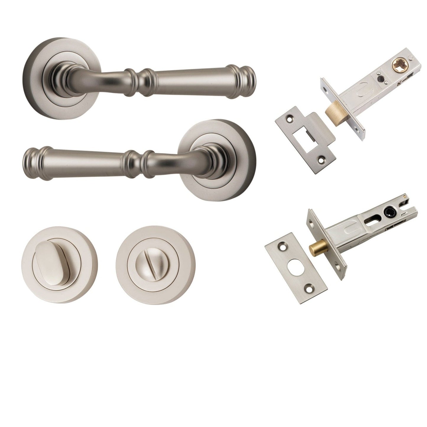 Iver Door Handle Verona Round Rose Pair Satin Nickel Privacy Kit