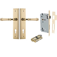 Included in Kit: Door Lever Verona Stepped Euro Polished Brass CTC85mm H240xW50xP59mm Entrance Kit, Mortice Lock Euro Polished Brass CTC85mm Backset 60mm, Euro Cylinder Dual Function 5 Pin Polished Brass L65mm KA1