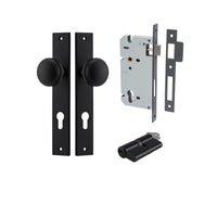 Iver Door Knob Paddington Rectangular Euro Key/Key Matt Black Entrance Kit
