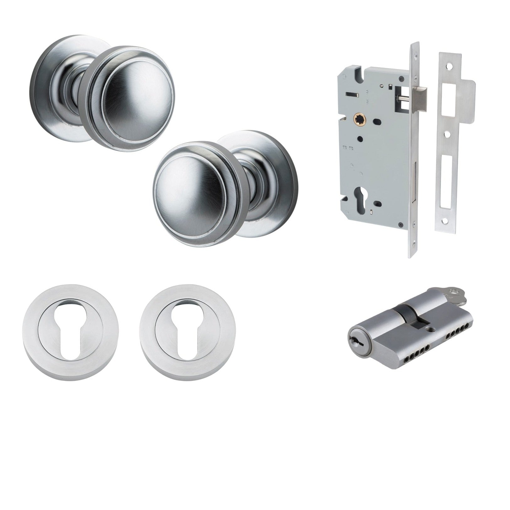 Iver Door Knob Paddington Round Rose Concealed Fix Key/Key Brushed Chrome Entrance Kit