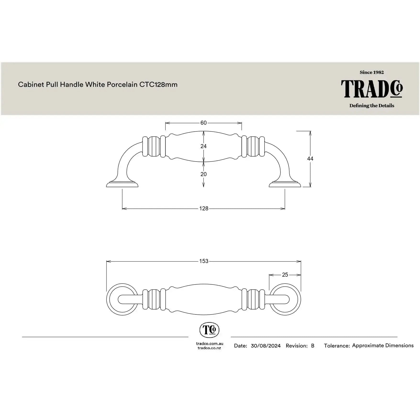 Tradco Pull Handle White Porcelain Matt Black CTC128mm