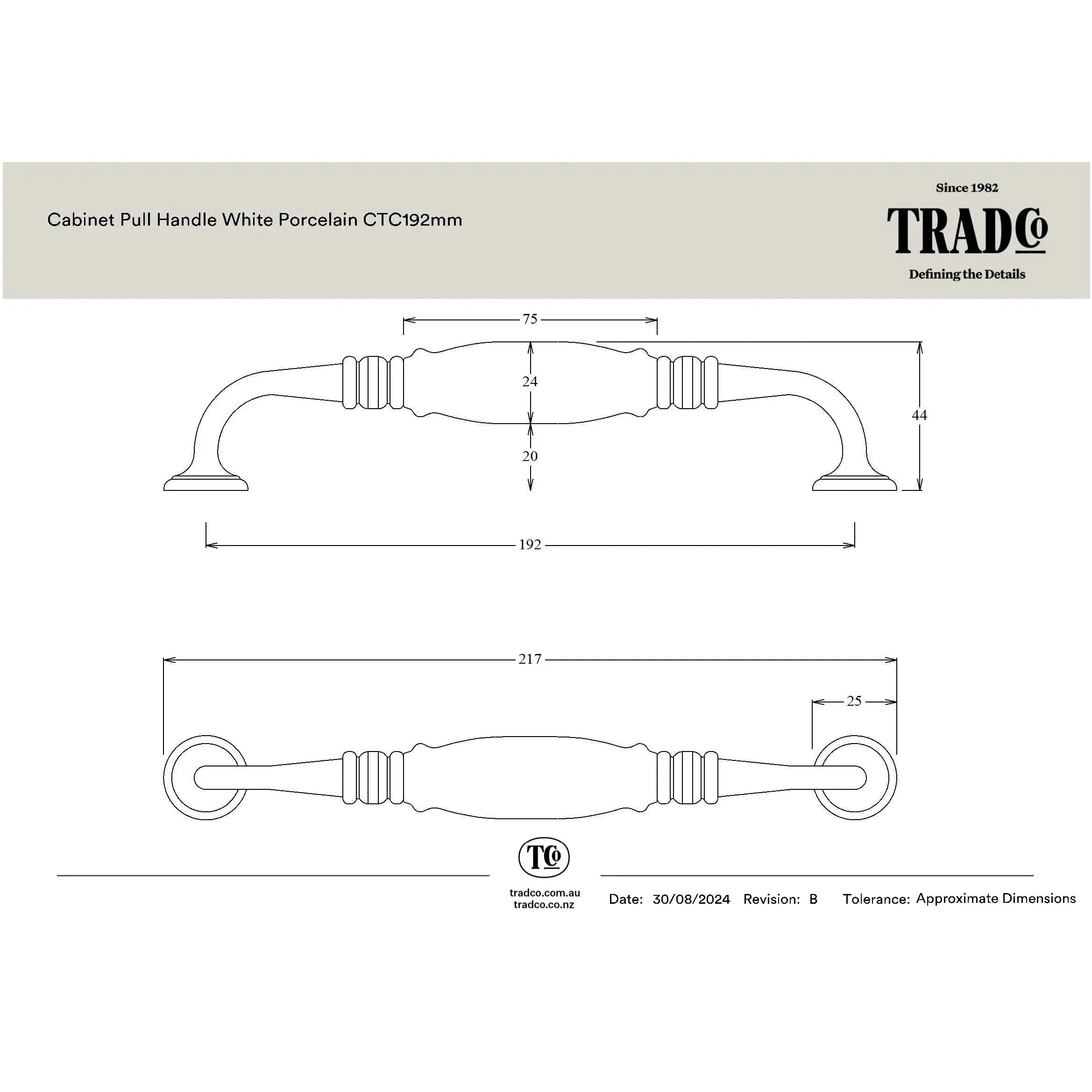 Tradco Pull Handle White Porcelain Matt Black CTC192mm